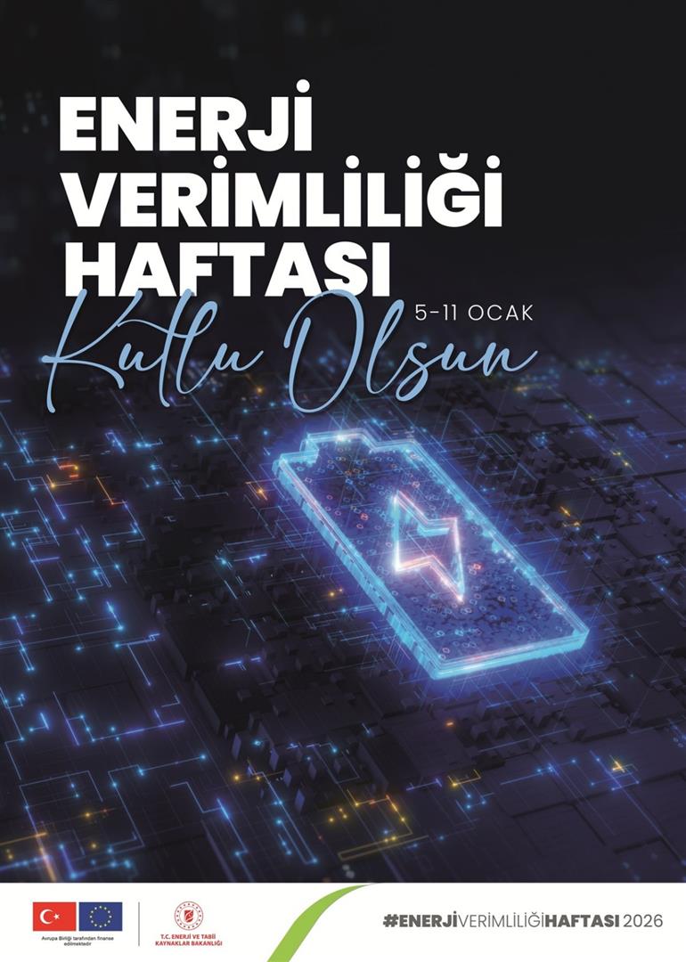 05 - 11 Ocak 2026 tarihleri arasındaki Enerji Verimliliği Haftası kapsamında Enerji ve Tabii Kaynaklar Bakanlığınca hazırlanan 5627 Sayılı Enerji Verimliliği Kanunu ile enerjinin etkin kullanılması, israfının önlenmesi, enerji maliyetlerinin ekonomi üzerindeki yükünün hafifletilmesi ve çevrenin korunması için enerji kaynaklarının ve enerjinin kullanımında verimliliğin artırılması hususunda farkındalığı amacıyla hazırlanan poster ve videolar sunulmuştur.
