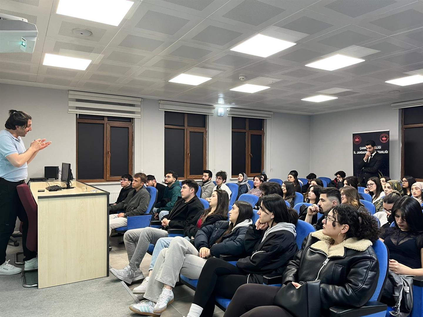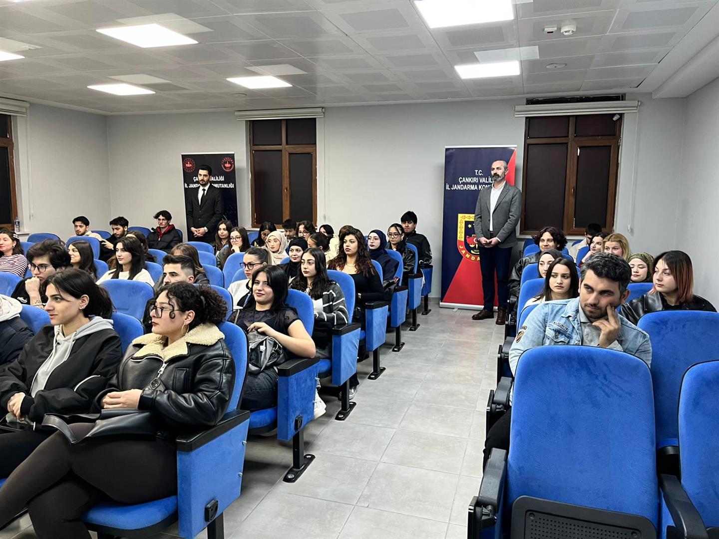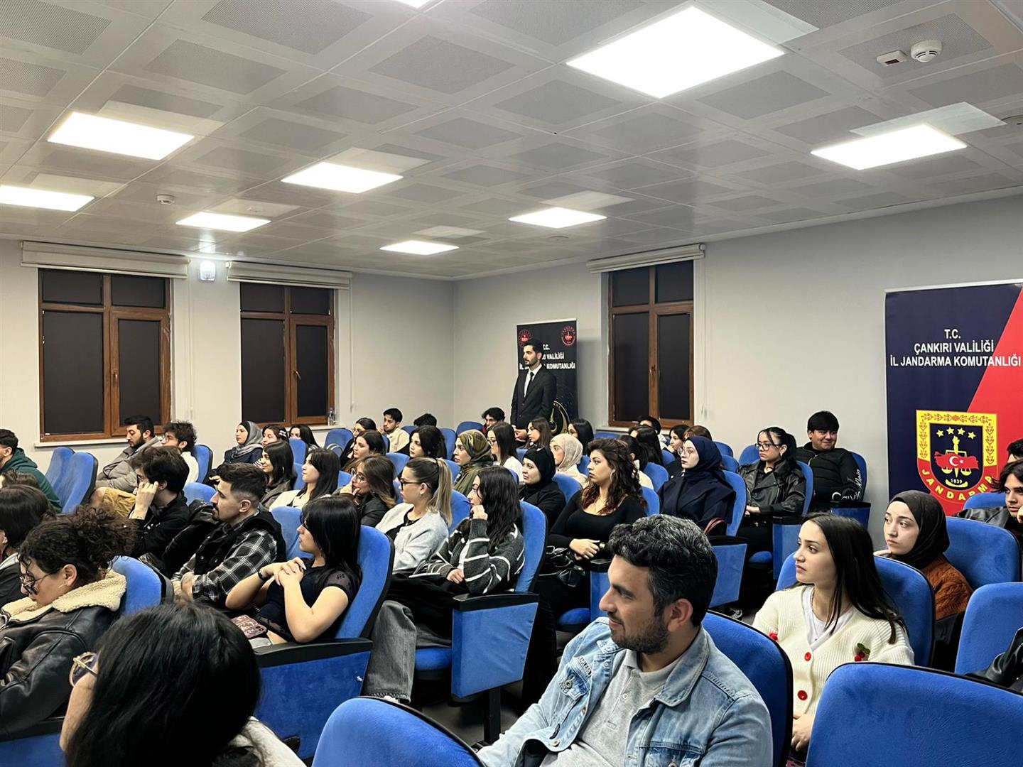 Fakültemizde 09.04.2026 tarihinden Çankırı Valiliği İl Jandarma Komutanlığı tarafında konferans salonunda öğrencilerimize siber saldırı bilgilendirme toplantısı gerçekleştirildi.